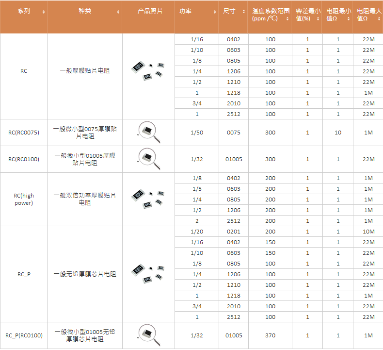 國巨RC系列厚膜電阻包括了:常規(guī)厚膜電阻、小型0075厚膜貼片電阻、小型01005厚膜貼片電阻、大功率厚膜貼片電阻、無鉛厚膜貼片電阻。