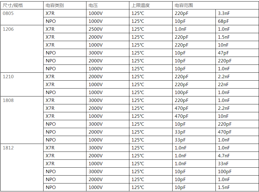 國巨高壓電容常用參數(shù)表