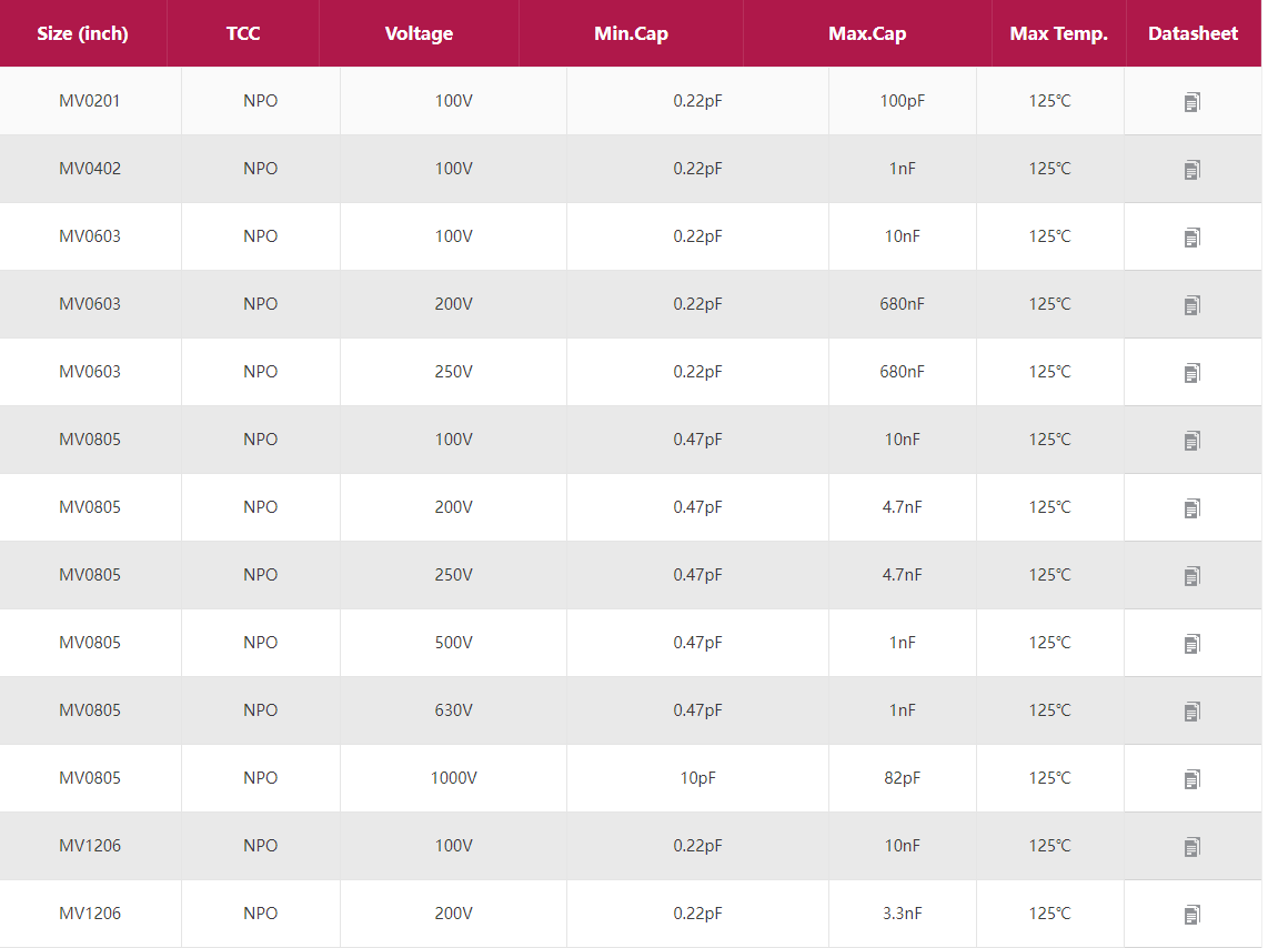 信維中高壓電容 產(chǎn)品型號:0201 0402 0603 0805 1206 1210